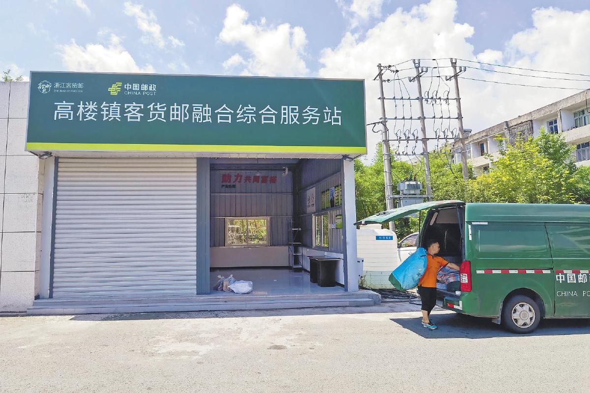 在浙江瑞安高樓鎮(zhèn)客貨郵融合綜合服務站,郵政投遞員正在裝卸郵件。 □李哈妮 攝
