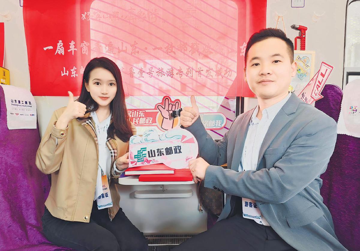 4月10日,“好客山東·齊魯1號”旅游專列首發(fā)。山東省濟(jì)南市郵政分公司以“一扇車窗看遍山東、一枚郵戳收藏山東”為主題,在車內(nèi)設(shè)置文創(chuàng)展區(qū),展出40余款融合山東文旅特色的集郵文創(chuàng)產(chǎn)品,吸引了參加首發(fā)活動(dòng)的山東省有關(guān)部門領(lǐng)導(dǎo)駐足參觀并給予高度評價(jià)。
