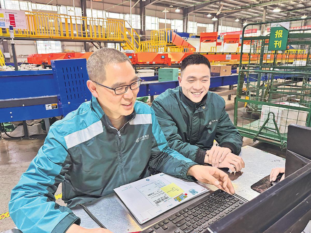 為驗(yàn)證想法的可行性,邱文波利用休息時(shí)間和同事一起調(diào)整傳送帶的分發(fā)程序設(shè)置,并在傳送帶兩側(cè)設(shè)置分揀區(qū)域,一邊是城區(qū)郵件分揀區(qū),另一邊是鄉(xiāng)鎮(zhèn)郵件的暫存區(qū)。兩周后,原本需要5名分揀員協(xié)作的工作,3人即可完成,效率提升近40%?!耙郧胺謷菂^(qū)、鄉(xiāng)鎮(zhèn)的包裹需要很長時(shí)間,現(xiàn)在重新調(diào)整了分揀流程,不僅分揀效率提高了,后續(xù)鄉(xiāng)郵封發(fā)組的工作也輕松了。”負(fù)責(zé)封發(fā)的何靜波感慨道。