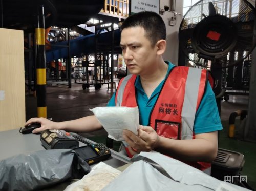 毛自學(xué)在??趪?guó)際郵件交換站處理國(guó)際郵件(央廣網(wǎng)記者 付美斌 攝)