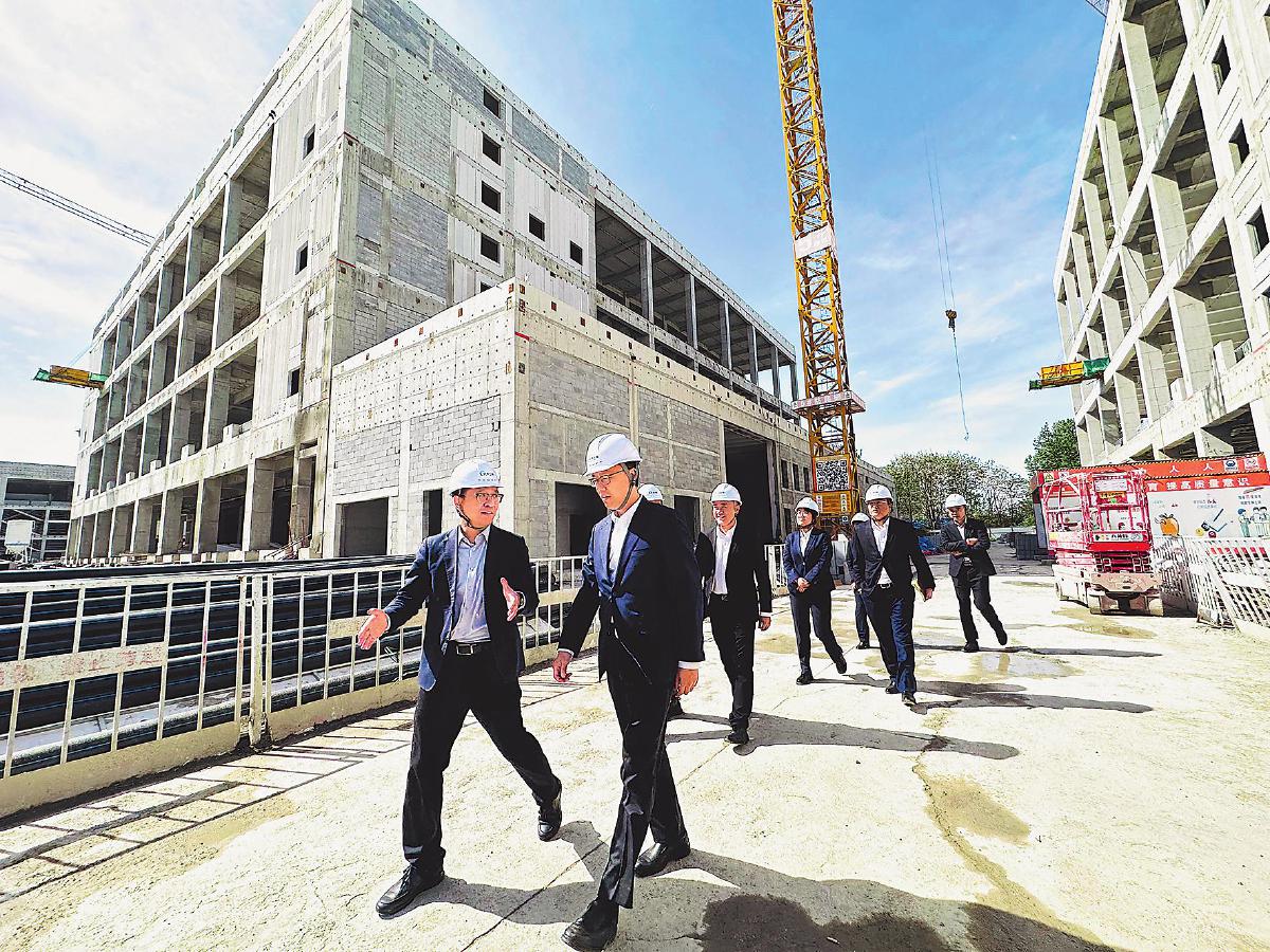 劉炎(前右)在長(zhǎng)清區(qū)農(nóng)批市場(chǎng)片區(qū)城市更新項(xiàng)目現(xiàn)場(chǎng)考察。