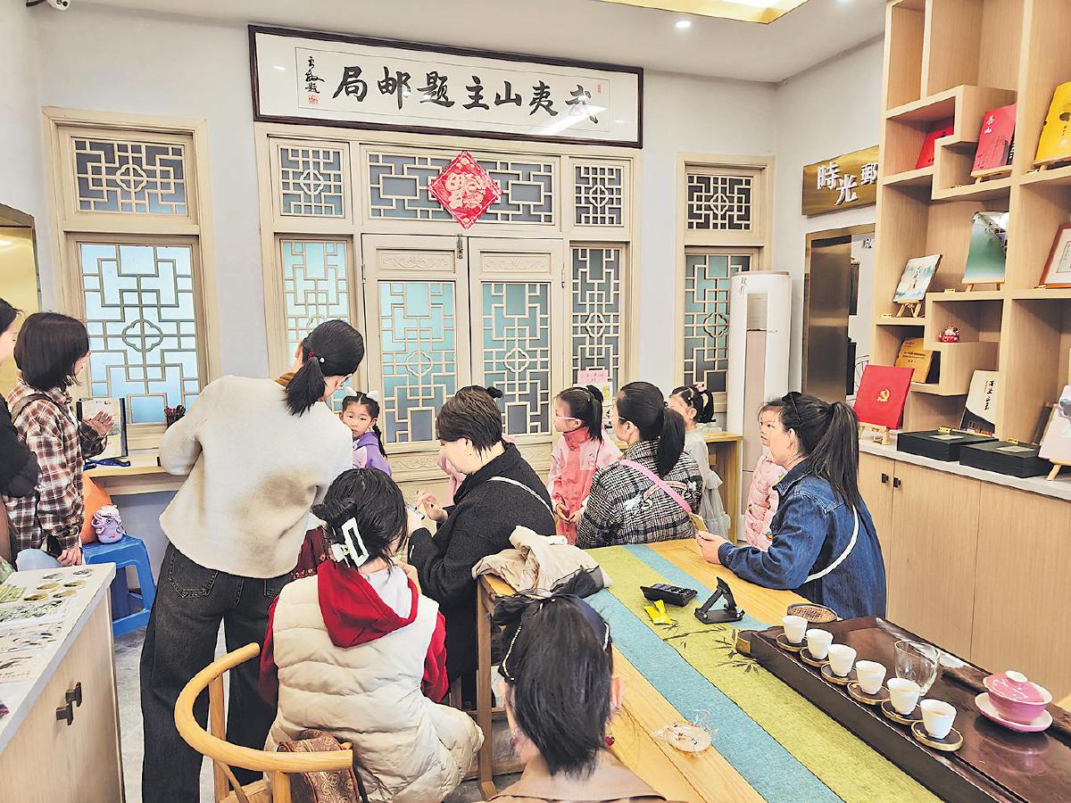 武夷山主題郵局以其創(chuàng)新的服務(wù)模式,成為武夷山文旅發(fā)展和鄉(xiāng)村振興的重要載體。主題郵局以“茶旅融合”為契機(jī),將文創(chuàng)產(chǎn)品與武夷品茗、武夷文化有機(jī)結(jié)合,通過(guò)“一杯香茗、一個(gè)故事、一段小憩、一件文創(chuàng)品”,引導(dǎo)游客在“游山玩水”的自在游中“慢”下 來(lái),靜心體驗(yàn)武夷巖茶的“回甘韻味”。