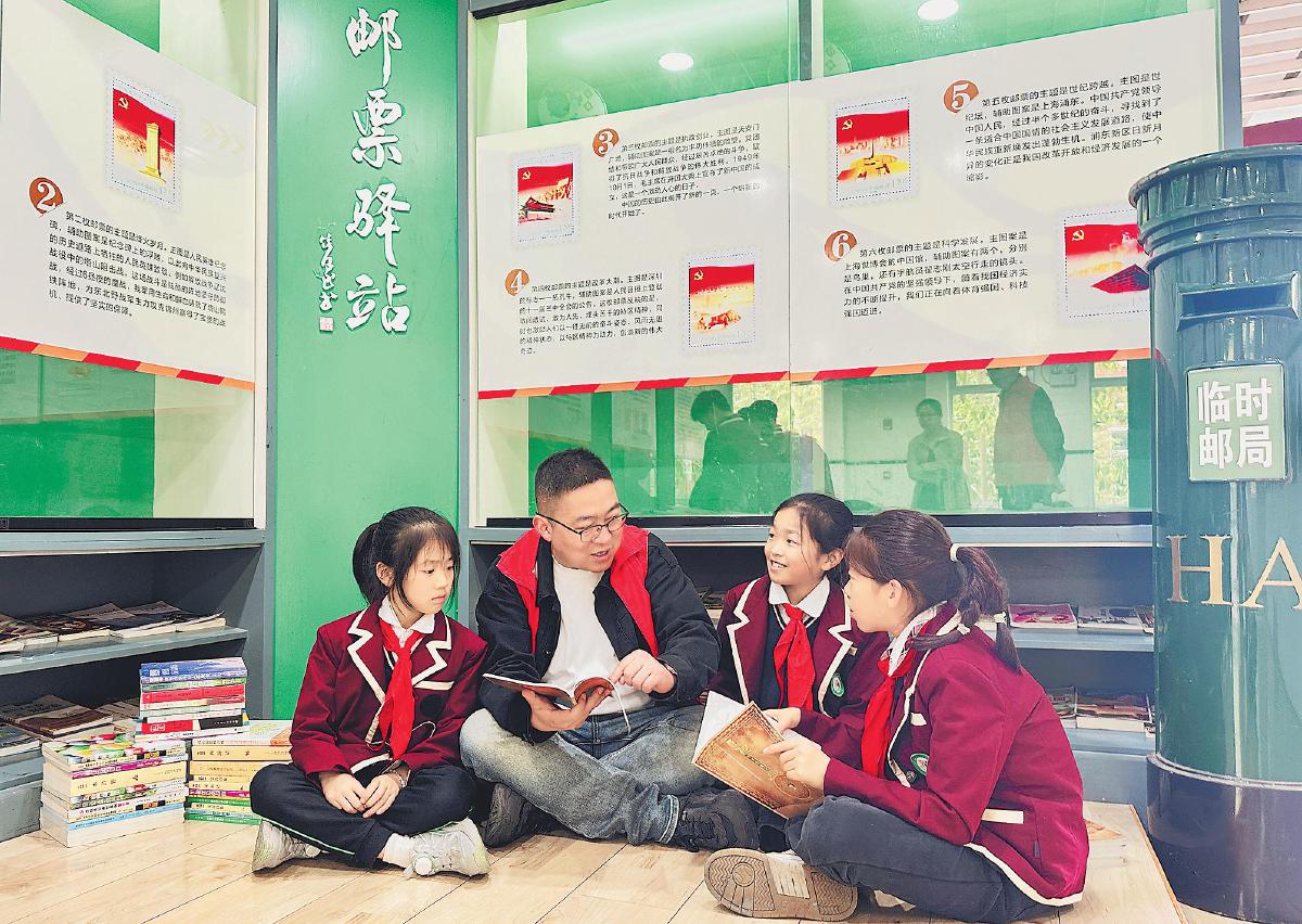 4月22日,江蘇省海安市郵政分公司走進城南實驗小學(xué)“郵票驛站”,開展全民閱讀圖書校園巡展活動?;顒蝇F(xiàn)場,同學(xué)們與郵政志愿者共讀集郵圖書,學(xué)習(xí)郵票知識?! 蹴f雅琴 攝影報道