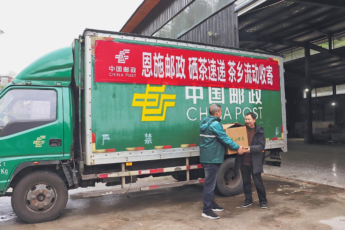在恩施市芭蕉鎮(zhèn)的一家茶園里,采茶人指尖翻飛,嫩綠的芽尖簌簌落入竹簍。山腳的茶廠車間,20多名工人正忙碌地分裝炒好的茶葉?!拔杷龠f”項目組組長劉學章和同事麻利地驗視、打包、封裝、錄單,一箱箱茶葉將搭乘綠色郵車運往全國各地。恩施土家族苗族自治州郵政分公司創(chuàng)新構建派駐營銷體系,通過打造“懂茶、懂客、懂線”的專業(yè)營銷團隊,進駐茶市、茶廠,強化對散戶客戶的營銷開發(fā),單日峰值收寄量突破500件。自“硒茶速遞”項目啟動以來,已實現(xiàn)寄遞收入32萬元,新增合作客戶18家,帶動郵儲授信120萬元,實現(xiàn)了從派駐團隊扎根一線到全產(chǎn)業(yè)鏈協(xié)同賦能的進階。