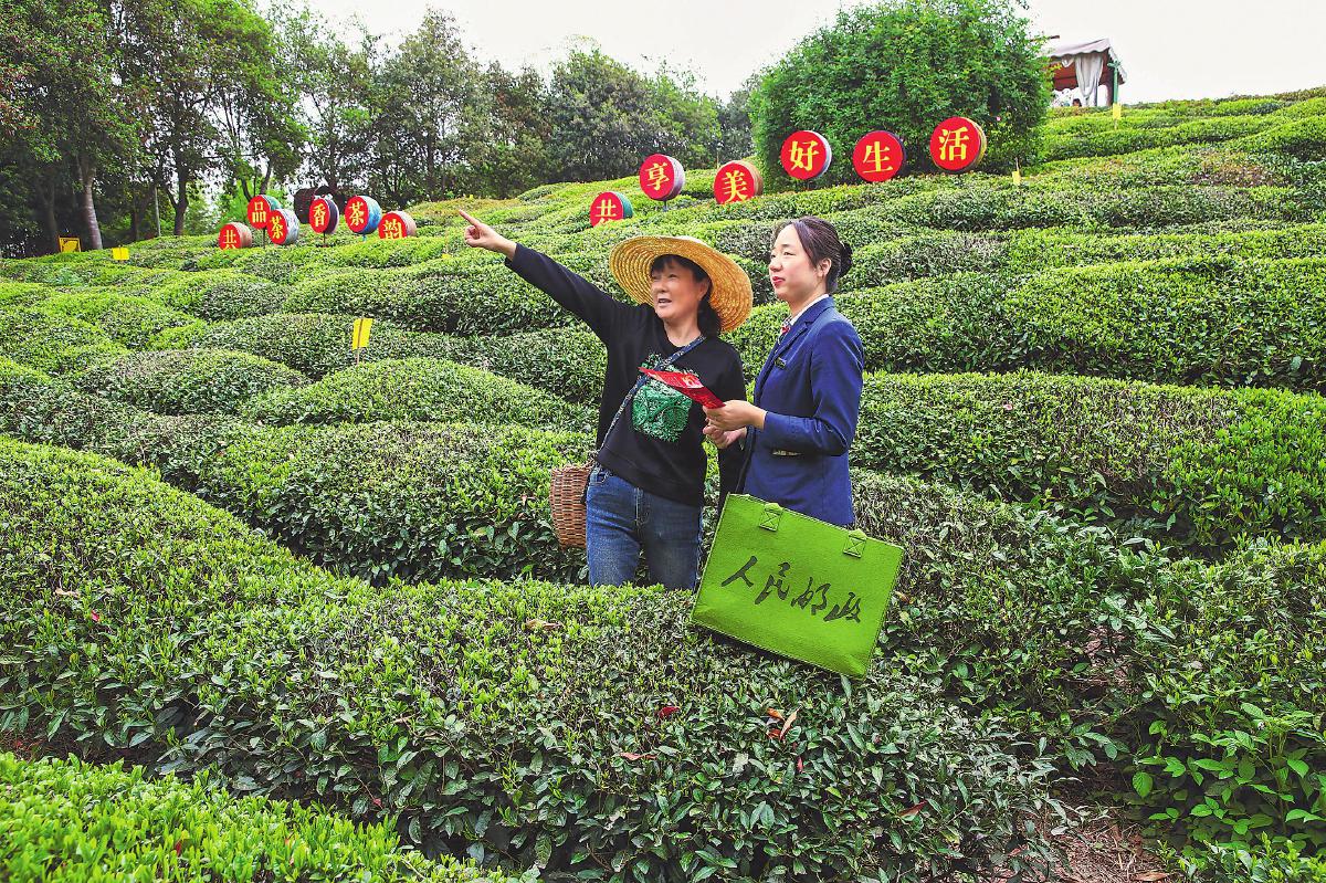 隨著新茶上市旺季的到來,茶農(nóng)們上春山、采春茶,歷經(jīng)采摘、殺青、揉捻、烘焙等過程,在“郵政綠”的專業(yè)服務(wù)支撐下,一片片嫩綠的茶葉實現(xiàn)蝶變。它們沿著郵政網(wǎng)絡(luò)在山野鄉(xiāng)村、喧囂都市間“流淌”,最終進入千家萬戶,化作一杯杯甘醇,沁人心脾?!班]政綠”托舉起鄉(xiāng)村振興的希望,將綠水青山真正轉(zhuǎn)化為金山銀山。