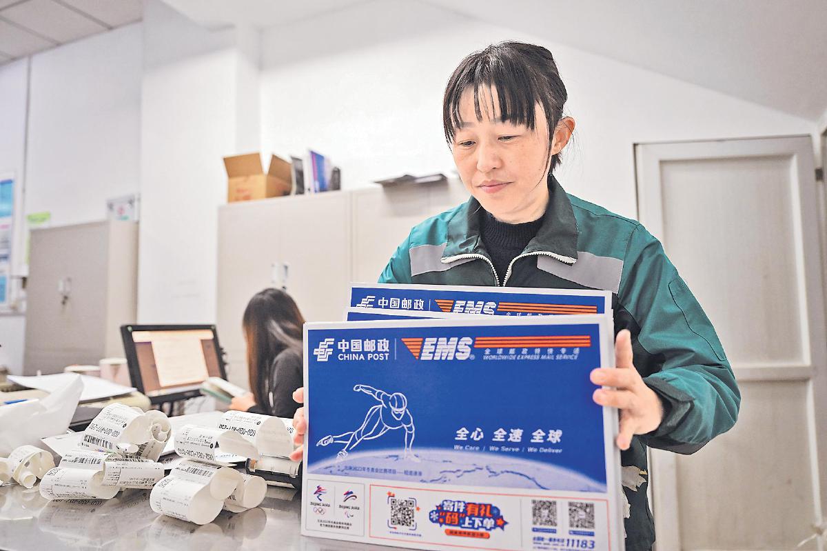 劉婷整理當天需要投遞的郵件。
