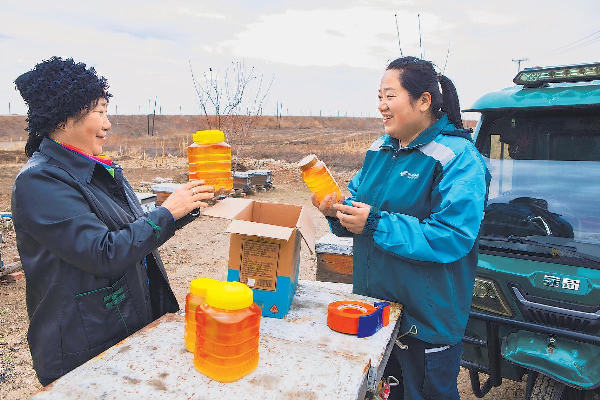 王微摸清了常勝鄉(xiāng)蜂農(nóng)的分布情況后,積極利用投遞機(jī)會(huì)與蜂農(nóng)分享微商銷售方法,幫助他們建立線上銷售渠道。她用淳樸的語(yǔ)言向買家推薦當(dāng)?shù)氐膬?yōu)質(zhì)蜂蜜,贏得了一大批回頭客。打開網(wǎng)絡(luò)銷售渠道后,王微主動(dòng)到蜂農(nóng)家收取蜂蜜郵件,還為他們提供打包、封裝、貼單的“一條龍”服務(wù)。目前,王微已累計(jì)寄遞蜂蜜郵件達(dá)4700余件。