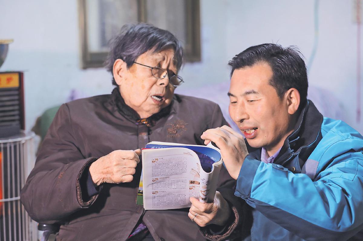 喬金濤常為郵路上的老年客戶讀報讀刊。