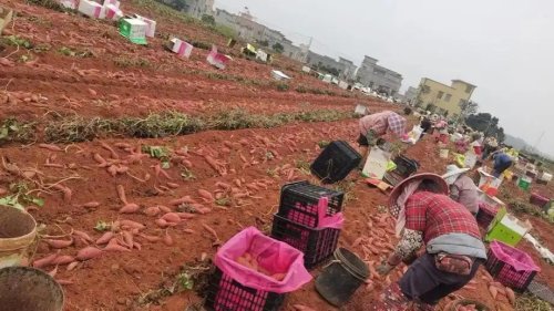 200公里外的湛江遂溪縣,番薯種植大戶鄧某雄的800畝“西瓜紅”番薯迎來豐收。此前,他因土地租金、農(nóng)資采購等一度倍感壓力。