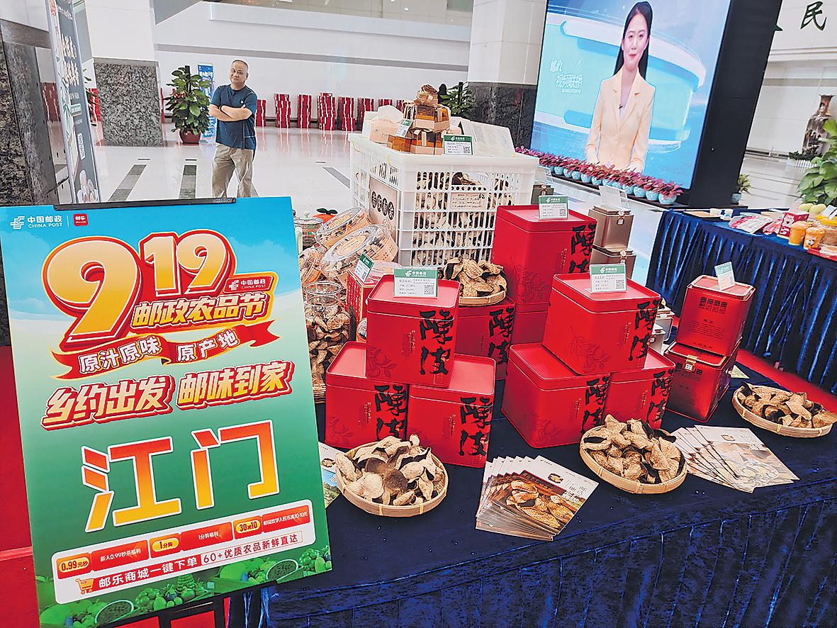 江門郵政在“919郵政農(nóng)品節(jié)”期間開設(shè)新會陳皮展銷專區(qū)。 □黃雪梅 攝