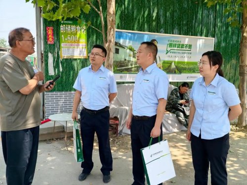2025年5月26日,郵儲(chǔ)銀行汝南縣老君廟鎮(zhèn)支行支行長(zhǎng)、信貸客戶經(jīng)理上門走訪汝南縣老君廟鎮(zhèn)收糧大戶馮俊喜,了解夏糧收購(gòu)資金情況。