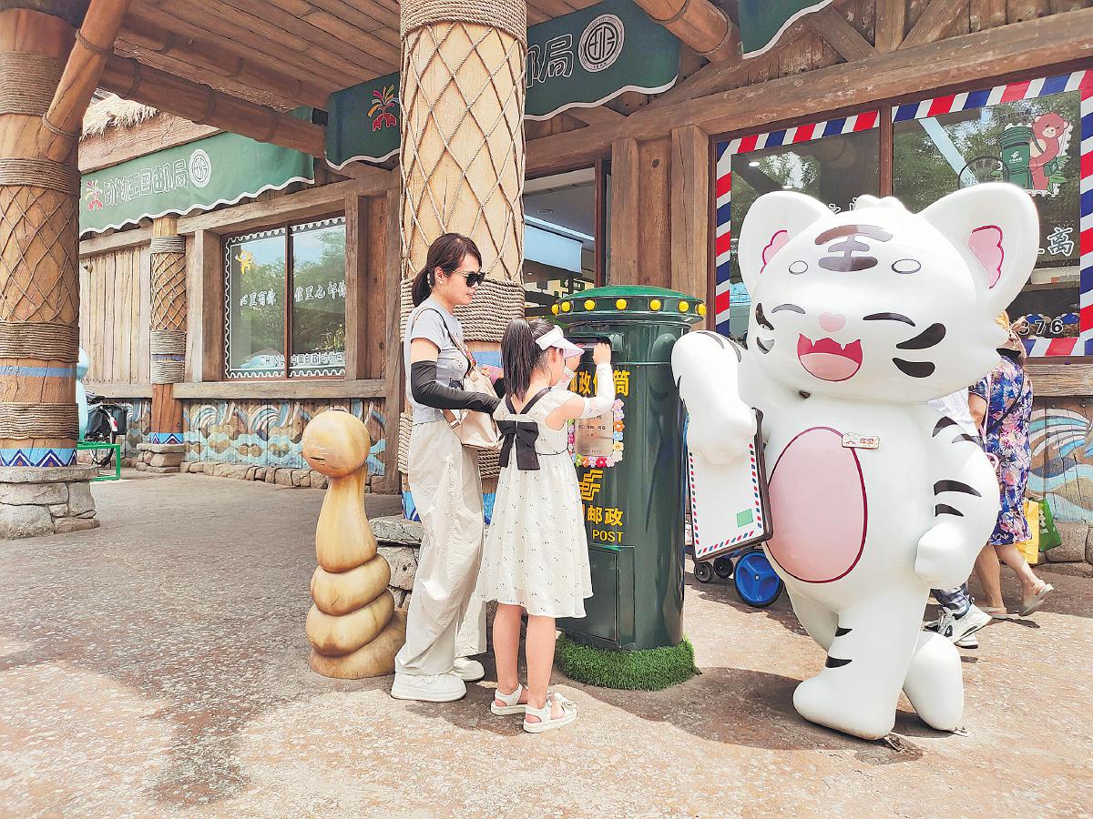 在動物王國主題郵局,游客還可以一展藝術(shù)天賦。鄭州市郵政分公司聯(lián)合銀基動物王國,從5月15日起,以“動物也是咱嘞朋友”為主題,開啟首屆速寫藝術(shù)季手繪作品征集活動。活動期間,小朋友們可以充分發(fā)揮自己的想象力,在畫板上盡情勾勒在動物王國里看到的美好瞬間:長頸鹿伸長脖子優(yōu)雅地啃食著樹梢的嫩葉、小老虎在草地上活潑地打滾、大象揮動著長長的鼻子歡快戲水……活動結(jié)束后,優(yōu)秀作品將被精心制作成明信片在主題郵局展示。