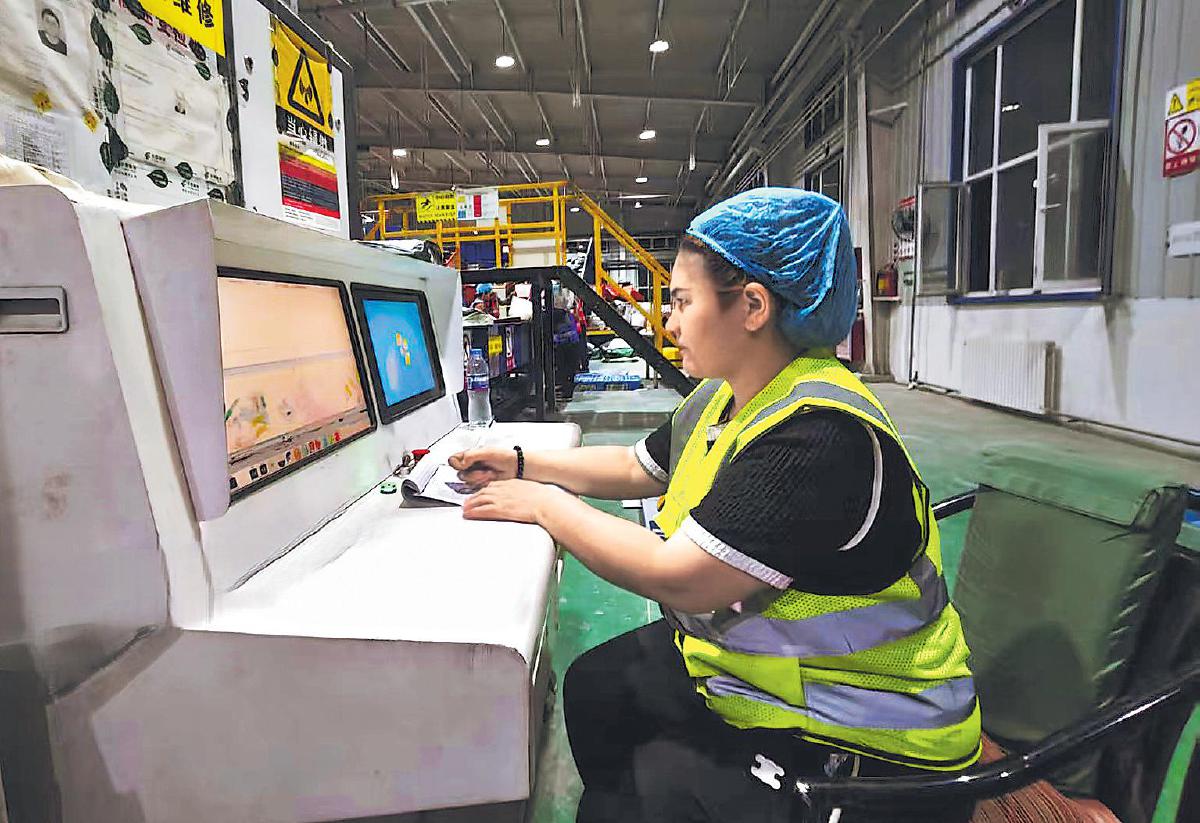 從5月底開始,新疆維吾爾自治區(qū)和田地區(qū)迎來一波快遞高峰。和田地區(qū)郵政分公司新增30名作業(yè)人員,后臺行政工作人員隨時支援一線生產;新增5輛運輸車,加密農村配送網絡;254個格口的自動分揀機全速運轉,包裹日處理能力達12萬件。圖為郵政工作人員通過安檢設備對進口郵件進行安檢。