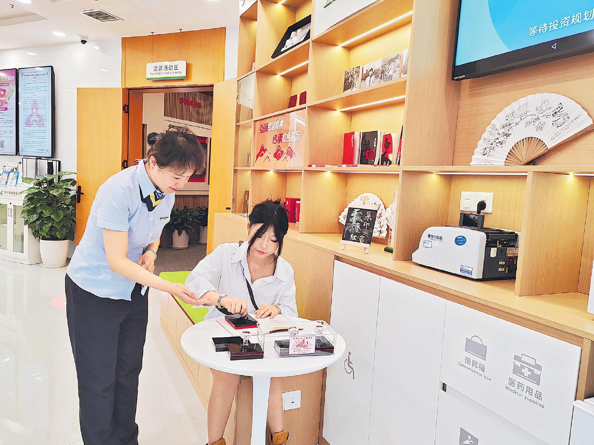 “郵儲銀行刷新了我對銀行的認(rèn)知,在這里既能辦業(yè)務(wù),又能感受紅巖精神,還能收集特色印章,我太喜歡了?!痹诰W(wǎng)點附近工作的張女士贊嘆道。走進(jìn)瑞天路支行,“紅巖讀書角”的書架上擺放著《紅巖》《烈火中永生》等紅色經(jīng)典書籍,供客戶閱讀;特色紅巖文創(chuàng)紀(jì)念品琳瑯滿目,從印有紅巖精神的筆記本、書簽,到紅巖主題的紀(jì)念徽章、折扇,吸引著年輕客群駐足;紅巖文化印章打卡區(qū)更是人氣爆棚,客戶排著隊在自己的紀(jì)念冊上蓋上一枚枚精美的紅巖印章,仿佛在收藏一份獨特的紅色記憶。這些互動體驗讓紅色文化傳播更接地氣,也讓紅巖精神在新時代煥發(fā)出新的活力。