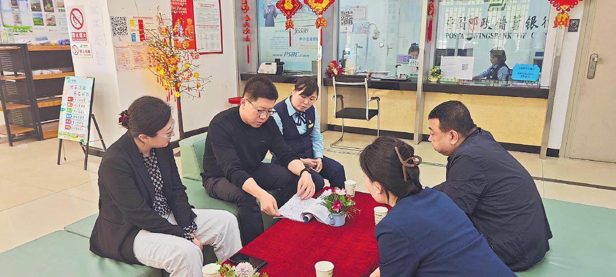 張育琪(左二)在基層網(wǎng)點(diǎn)調(diào)研指導(dǎo)工作。