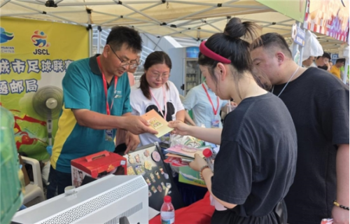 7月6日,江蘇足球超級聯(lián)賽(簡稱“蘇超”)淮安對陣常州的焦點之戰(zhàn)在淮安體育中心激情上演?;窗彩朽]政分公司把握賽事機遇,深化專業(yè)協(xié)同,以特色文創(chuàng)產(chǎn)品為切入點,深度融入體育盛會,為賽事提供郵政專屬的綜合服務。
