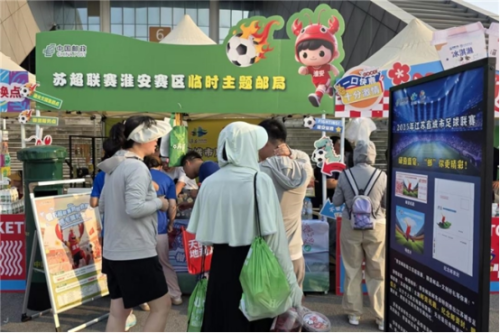 鎖定主場,延伸服務半徑。淮安郵政充分發(fā)揮主場優(yōu)勢,成功爭取多個現(xiàn)場助威名額,在全市范圍內策劃開展“郵我來助威,一鉗定勝負”系列主題活動。在郵政網(wǎng)點設立“蘇超助威區(qū)”,為市民提供賽事直播觀看、文創(chuàng)產(chǎn)品領取等沉浸式互動體驗,有效延伸了服務觸角。