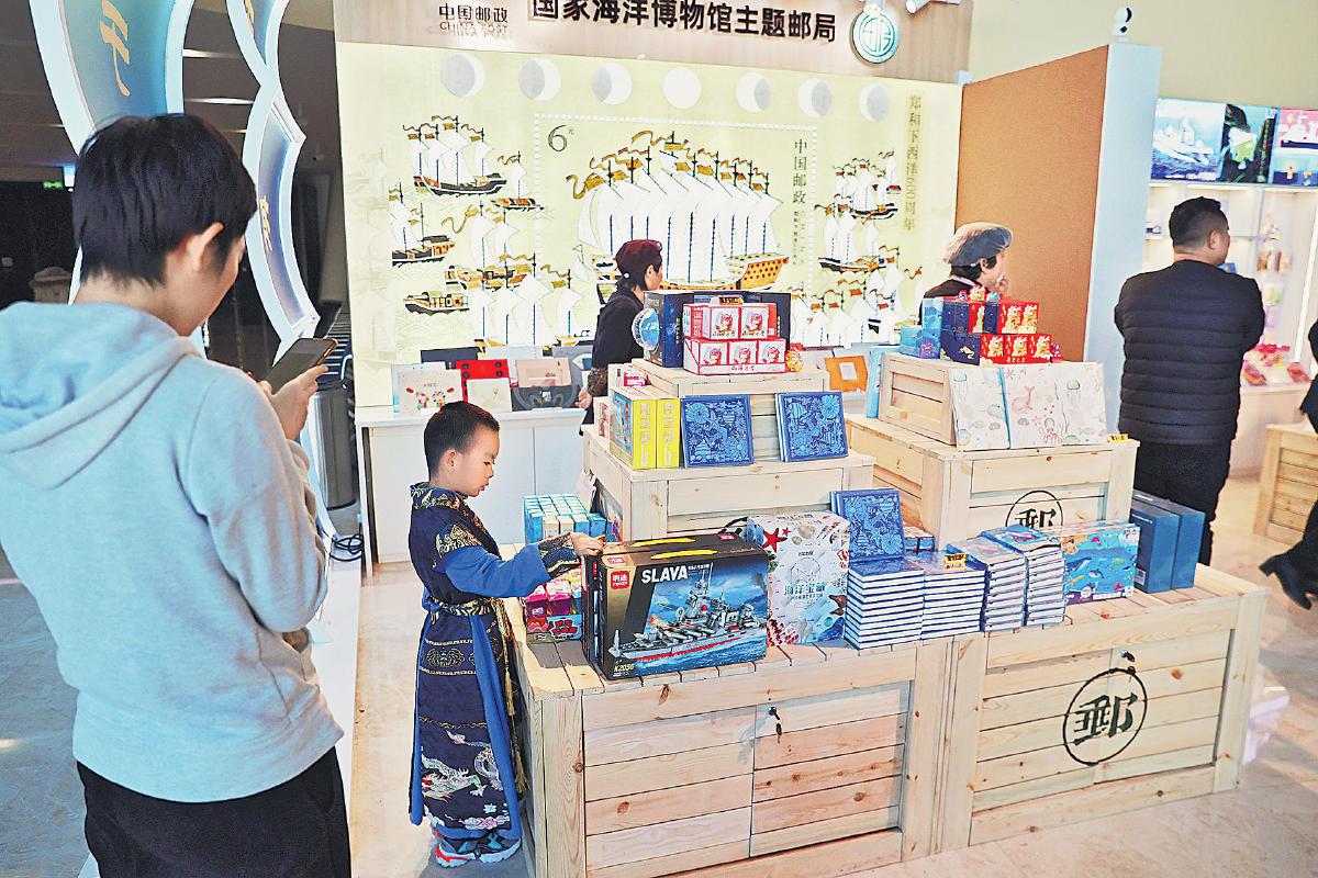 前來打卡的小朋友在主題郵局了解到更多海洋文化知識。□王浩然 攝
