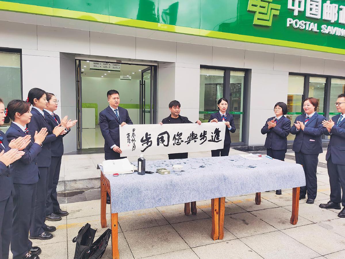 除網(wǎng)點環(huán)境布置外,印江縣支行持續(xù)強化特色服務,以書法為亮點,組織開展主題活動,為客戶提供差異化體驗。該支行邀請書法家協(xié)會會員到現(xiàn)場書寫書法作品,并將作品贈予客戶及網(wǎng)點周邊居民。通過常態(tài)化開展送對聯(lián)、書法知識交流創(chuàng)作等各類文化交流活動,該支行為廣大書法愛好者提供了寶貴的交流平臺,拉近網(wǎng)點與客戶及周邊社區(qū)居民的距離。還邀約客戶參加書法主題沙龍,邀請書法老師講解書法知識,讓客戶在感受傳統(tǒng)文化魅力的同時,了解郵儲銀行的文化內涵。通過這些特色活動,該支行構建了“以客戶為中心,以書法為紐帶”的特色服務模式,既營造了文化氛圍、提升了服務質量,也拓寬了客群,促進了網(wǎng)點各項業(yè)務的穩(wěn)健發(fā)展。