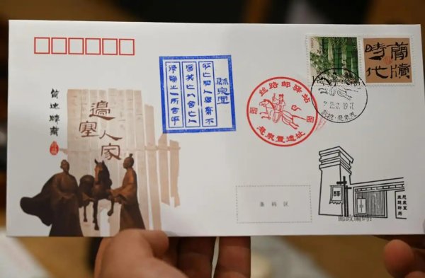 7月19日,游客展示懸泉置遺址紀(jì)念封。
