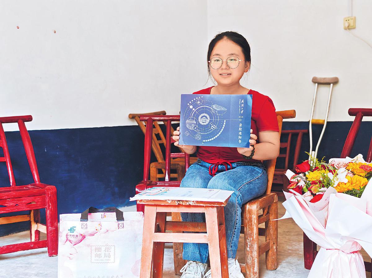 7月30日上午,一封高考錄取通知書從湖北省恩施土家族苗族自治州巴東縣清太坪郵政支局出發(fā),抵達考生田艷青手中——這位被稱作“玻璃娃娃”的小姑娘曾被多家央媒報道,因患有罕見的成骨不全癥,12年求學路上,她經(jīng)歷了7次骨折。但身體沒有禁錮住她不屈的靈魂,今年,田艷青以631分(含少數(shù)民族10分加分)成功考入武漢大學歷史學院。
