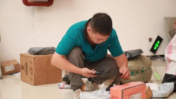 中午12點,李德雙駕駛著裝滿快遞的車輛,經過近一個小時的顛簸,順利抵達打朝村。他絲毫顧不上旅途的疲憊,立刻著手將一個個包裹從車上卸下,仔細對照收件人信息逐一核對,生怕出現任何錯漏,確保每一件快遞都能準確送到村民手中。