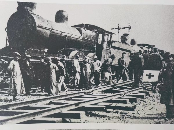 沿著鐵路救治傷員的救護隊。