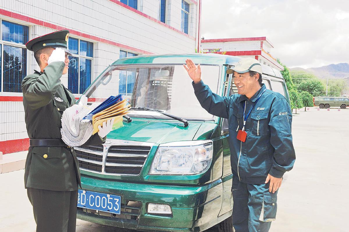 西藏郵政為邊防官兵送去黨報(bào)黨刊和包裹郵件。