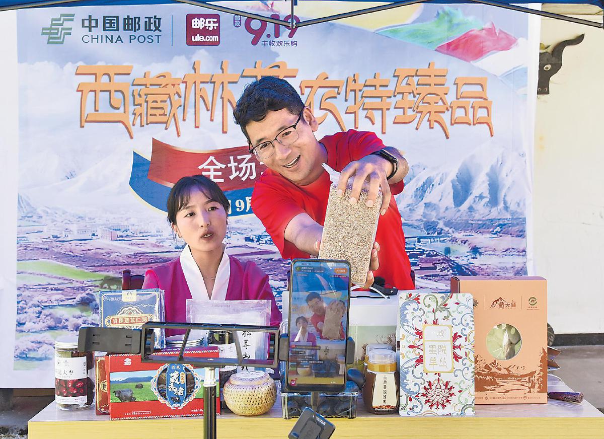 林芝市郵政分公司開(kāi)展墨脫紅米等農(nóng)特產(chǎn)品溯源直播,讓藏品“郵全國(guó)”。