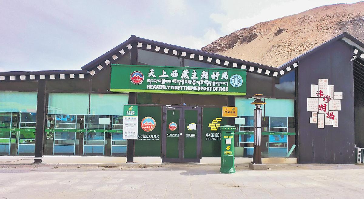 西藏郵政拓展普遍服務(wù)內(nèi)涵,著力打造天上西藏主題郵局品牌。圖為珠穆朗瑪峰店外景。