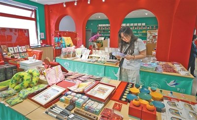 游客在北京地安門主題郵局選購文創(chuàng)產(chǎn)品。富田 攝(影像中國)