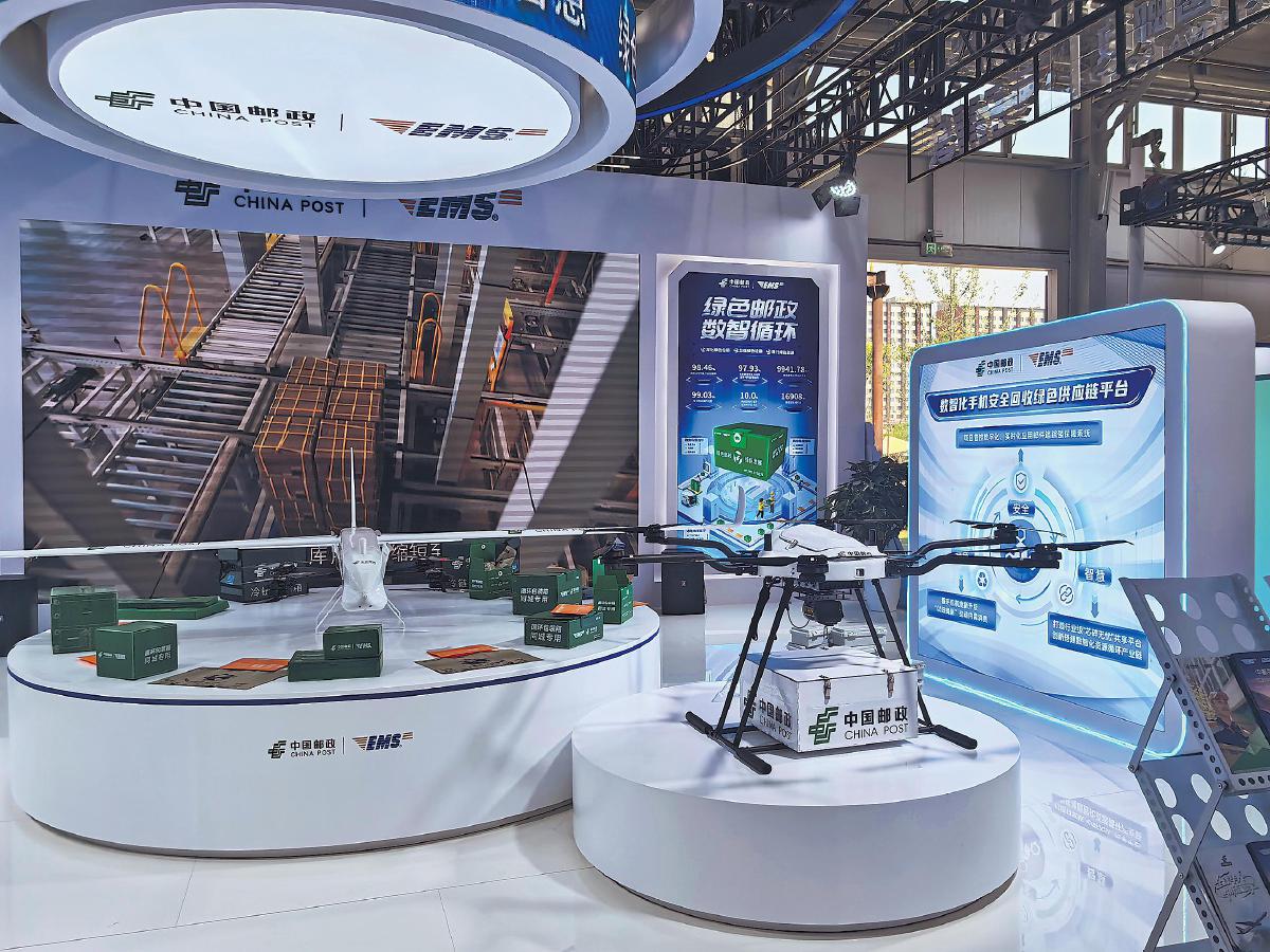 走進(jìn)供應(yīng)鏈及商務(wù)服務(wù)展區(qū),中國郵政速遞物流股份有限公司(以下簡(jiǎn)稱“中國郵政速遞物流”)展位上的UX25六旋翼無人機(jī)和E6A純電動(dòng)垂直起降固定翼無人機(jī)首先映入眼簾。來自中國外文局的唐女士和友人在展臺(tái)前駐足良久,她仔細(xì)觀看UX25六旋翼無人機(jī)和E6A純電動(dòng)垂直起降固定翼無人機(jī)的演示。“郵政的無人機(jī)太驚艷了!”她贊嘆道,“之前關(guān)注到無人機(jī)在多個(gè)領(lǐng)域廣泛應(yīng)用,沒想到在物流領(lǐng)域也如此普及。這種技術(shù)創(chuàng)新真令人驚喜。”展位上的講解員介紹:“去年,中國郵政成立了無人機(jī)公司,通過無人機(jī)、無人車、無人倉等無人設(shè)備,為廣大用戶提供智慧物流服務(wù),推動(dòng)低空物流規(guī)?;\(yùn)營(yíng)?!?/p>