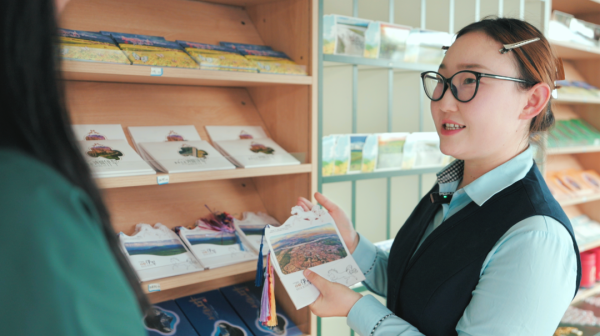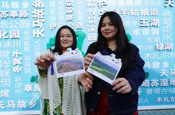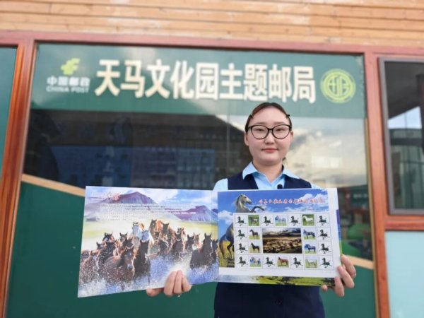 “馬上”郵局營業(yè)員彩紅說:“我手里的這款明信片是異形明信片,明信片上是伊犁風(fēng)光,有天馬的元素,還有流蘇,很有設(shè)計(jì)感。我們還開發(fā)了以伊犁景點(diǎn)為主題的流沙冰箱貼,其中這款紫色的薰衣草冰箱貼是我們這里的爆款。”