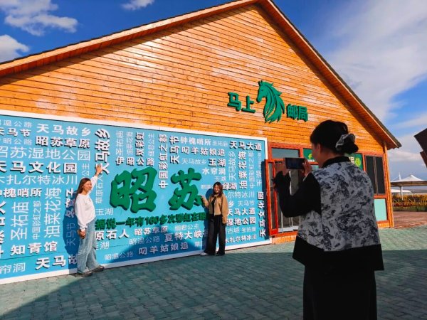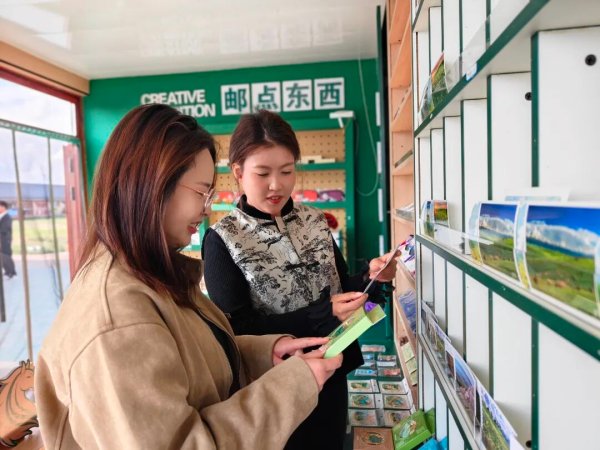 廣東省梅州市游客李女士說:“‘馬上’郵局很有特色,還有一個(gè)網(wǎng)紅墻可以拍照,隨意凹造型。平時(shí)我也會去景點(diǎn)購買明信片、冰箱貼當(dāng)做伴手禮,我要把我手里的明信片郵寄給朋友。”