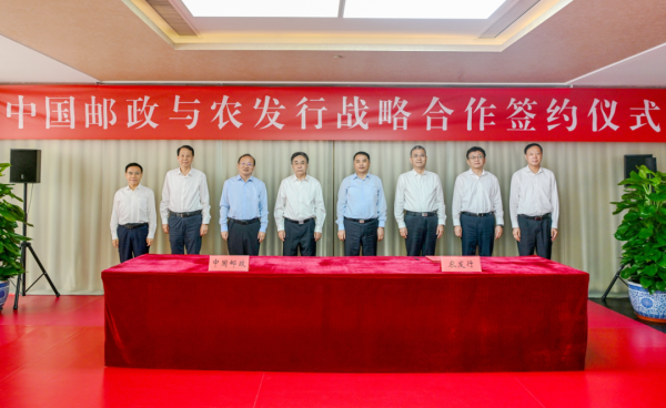 9月16日,中國郵政集團(tuán)有限公司與中國農(nóng)業(yè)發(fā)展銀行(以下簡稱農(nóng)發(fā)行)在中國郵政集團(tuán)總部簽署戰(zhàn)略合作協(xié)議。中國郵政集團(tuán)有限公司黨組書記、董事長劉愛力,黨組副書記、總經(jīng)理鄭國雨,與農(nóng)發(fā)行黨委書記、董事長湛東升,黨委副書記、行長張小東舉行工作會談,并共同見證簽約。中國郵政集團(tuán)有限公司黨組成員、副總經(jīng)理王儉,農(nóng)發(fā)行黨委委員、副行長吳濤分別代表雙方簽署協(xié)議。雙方相關(guān)部門負(fù)責(zé)同志出席。