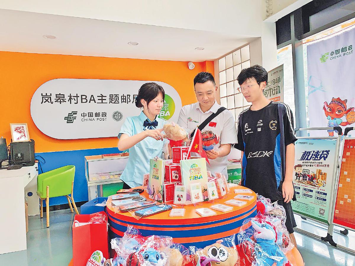 在“嵐皋村BA”主題郵局,處處都能看到令人驚喜的郵政元素。游客可以在自助機上DIY個性化冰箱貼。只需上傳一張個人照片,再選擇中意的嵐皋風景圖片,就能生成一個獨一無二的個性化冰箱貼,作為嵐皋之行的獨特紀念品。為籃球迷定制的明星打卡本,印有嵐皋風景照和大賽吉祥物,配合球星簽名更具收藏價值。大賽吉祥物主題的明信片、郵折、手機殼等產(chǎn)品也備受游客青睞。在這里既能寄信打卡,又能感受“村BA”文化,成了球迷觀賽、旅游的寶藏打卡地。嵐皋縣電子商務(wù)服務(wù)中心副主任、“嵐皋村BA”商貿(mào)圈辦公室負責人劉明軒表示:“郵政設(shè)立的‘村BA’主題郵局,實現(xiàn)了郵政與‘村BA’的雙向奔赴,為服務(wù)鄉(xiāng)村振興發(fā)揮了積極作用?!?/p>