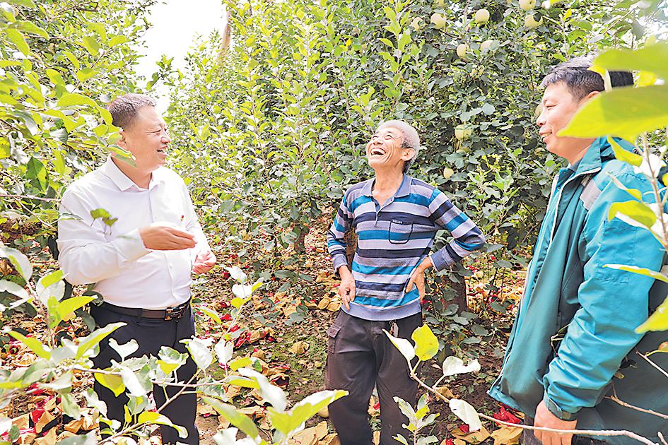 邢臺市城區(qū)分公司黨員專項服務隊隊員走訪果農(nóng)、了解需求。