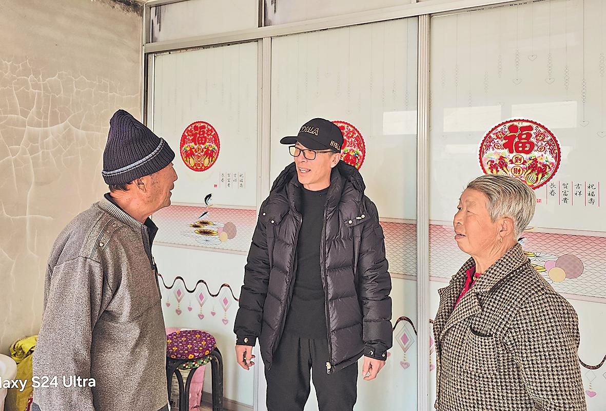 梁偉(中)走訪村民,詢問需求。