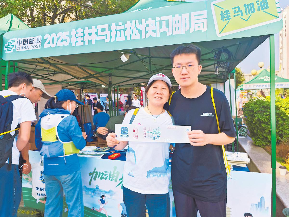 “快閃郵局”不僅提供個性化明信片打印、紀(jì)念郵戳加蓋等服務(wù),還推出馬拉松連片明信片、嵌入實物郵票的冰箱貼與手機(jī)支架等文創(chuàng)產(chǎn)品,吸引眾多選手駐足體驗。參賽選手王先生說:“我在比賽現(xiàn)場就集到本次馬拉松的2枚定制紀(jì)念郵戳和11枚桂林風(fēng)景章,非常開心,使我這次馬拉松之旅更加難忘?!痹S多跑友還通過明信片打印服務(wù)實時記錄參賽精彩瞬間,并現(xiàn)場寄遞分享。