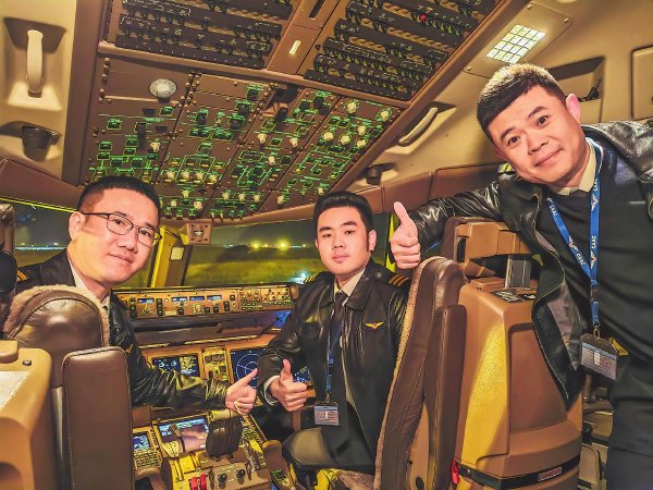 19日5:00,起飛前,機組人員為自己點贊加油,預祝飛行圓滿成功。