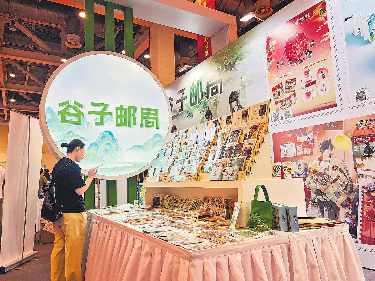 蘇州郵政“谷子郵局”亮相江蘇書展,吸引讀者駐足選購(gòu)特色郵品。
