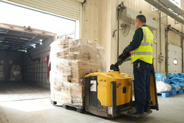 12月10日,工作人員在長(zhǎng)沙國(guó)際郵件互換局將出口包裹裝車。