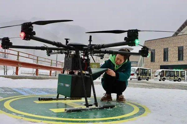 “郵件裝載完畢,已完成起飛前檢查,可以正常起飛!” 隨著指令下達(dá),這架搭載著快遞與報(bào)刊的“空中快遞員”騰空而起,沿云控3D航線向7公里外的冬奧村疾馳而去。14分鐘后,無人機(jī)精準(zhǔn)降落,在皚皚白雪中為山區(qū)打通了高效便捷的“空中郵路”。