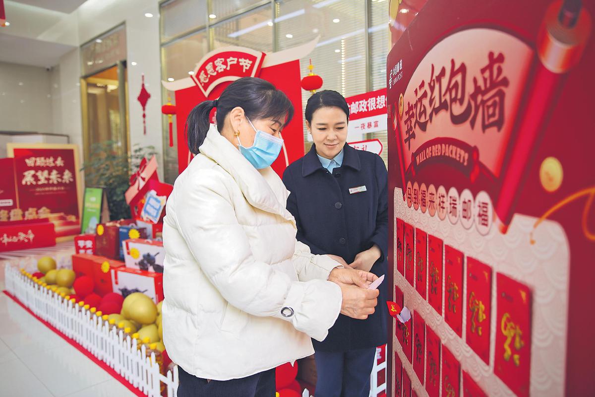 元旦佳節(jié)臨近,為回饋廣大客戶長(zhǎng)期以來(lái)的支持,營(yíng)造喜慶祥和的節(jié)日氛圍,湖北省十堰市郵政分公司組織各支局網(wǎng)點(diǎn)開(kāi)展“一馬當(dāng)先”迎新年廳堂活動(dòng)。各網(wǎng)點(diǎn)精心布置,張貼“一馬當(dāng)先”窗花和“福”字,積極邀約客戶參加新年抽紅包、兌好禮等活動(dòng),進(jìn)一步增強(qiáng)了客戶黏度,提升了客戶對(duì)郵政服務(wù)的認(rèn)同感。