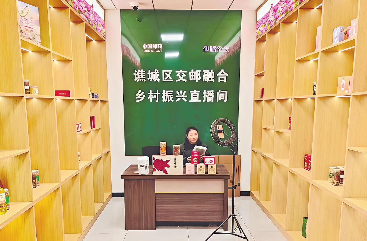 亳州市譙城區(qū)郵政分公司十河營(yíng)業(yè)所員工在進(jìn)行助農(nóng)直播。