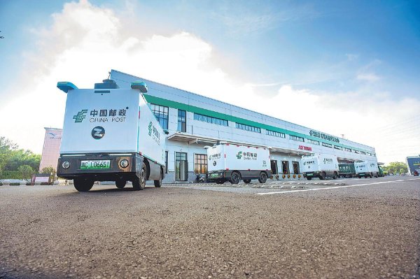 1月19日,在河南省淅川縣寄遞物流共配中心,郵政無人車滿載郵件整裝待發(fā)?! 鮿⒘P 攝