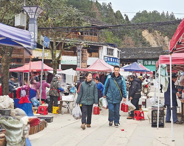 1月20日,貴州省丹寨縣排調(diào)鎮(zhèn)鄉(xiāng)場里,郵政“云上集市”工作人員拎著滿滿幾袋年貨,準備打包寄給在他鄉(xiāng)務(wù)工的鄉(xiāng)親。 □韓靜樺 攝
