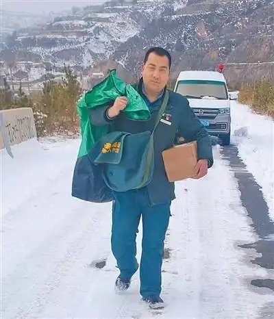 “今天下雪,車最多開到半山腰,后面的路還得靠腿走,所以得早點(diǎn)出發(fā)。”趙元瑞說(shuō)著發(fā)動(dòng)了車。作為鎮(zhèn)里的郵遞員,趙元瑞幾乎天天在溝壑縱橫、山路起伏的山梁間往返,這一條條熟悉的郵路,他已經(jīng)走了20多年。10多個(gè)行政村、上百個(gè)自然村,哪段路不好走,哪戶人家常年在家,他心里都有數(shù)。