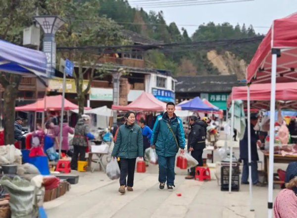 1月20日是黔東南州丹寨縣排調(diào)鎮(zhèn)的趕集日,清晨,薄霧尚未散盡,集市就已蘇醒,臘味的鮮香、米酒的醇香便混雜著村民的吆喝聲彌漫在街巷間。