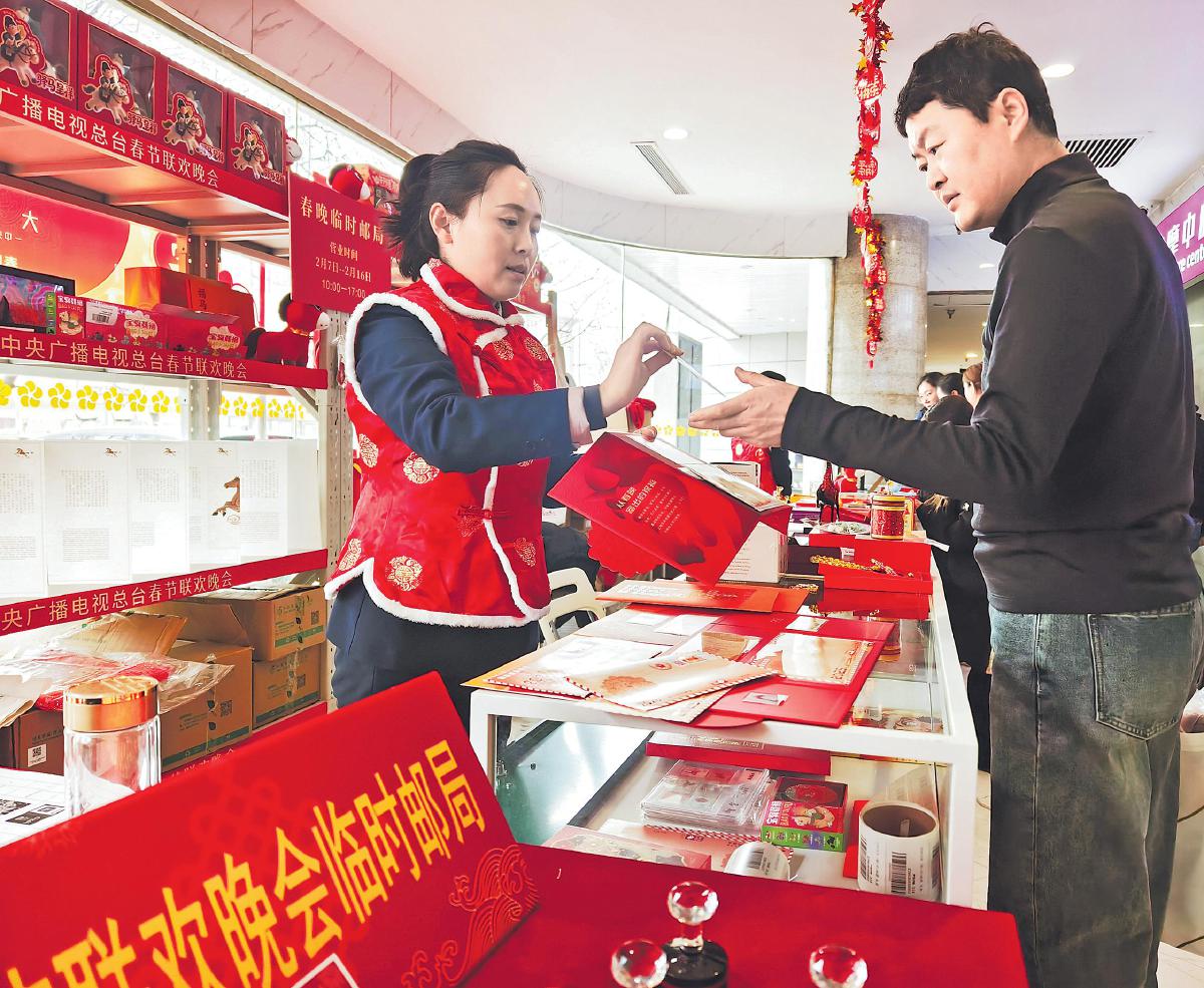 2月7日,春晚臨時(shí)郵局在北京梅地亞中心正式啟動(dòng)服務(wù)。今年的春晚臨時(shí)郵局在裝飾布置和產(chǎn)品供應(yīng)上不僅延續(xù)往年經(jīng)典,更融入2026年生肖馬元素,推出生肖主題郵票珍藏冊、總臺春晚文創(chuàng)紀(jì)念品等150余款產(chǎn)品,其中《從2026年中央廣播電視總臺春節(jié)聯(lián)歡晚會(huì)寄出的美好祝福》郵資紀(jì)念封一亮相便成為“爆款”。一位顧客表示:“今年是我第三年來春晚臨時(shí)郵局買這套‘春晚寄?!o(jì)念封了,從春晚現(xiàn)場寄出特別有紀(jì)念意義?!睋?jù)悉,春晚臨時(shí)郵局已安排好除夕當(dāng)天全員在崗,方便市民來此寄出祝福、蓋章留念。